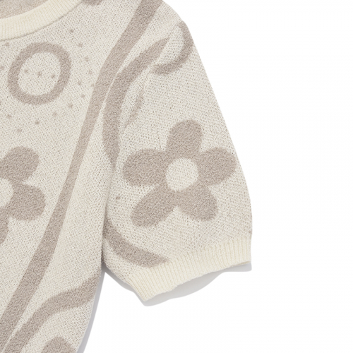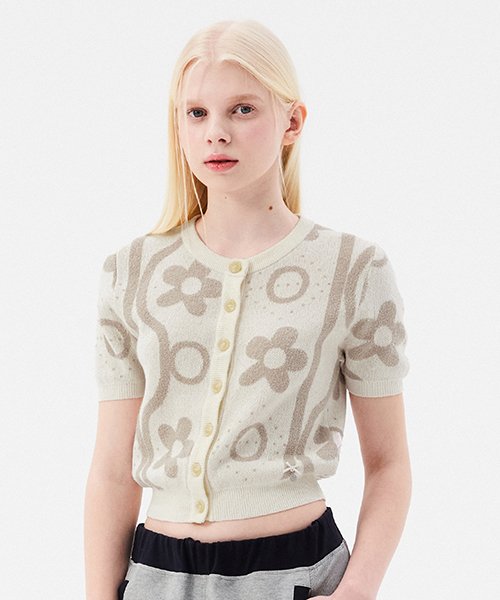 체리 자카드 패턴 숏 슬리브 가디건 [아이보리]
