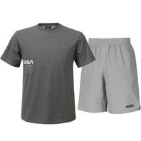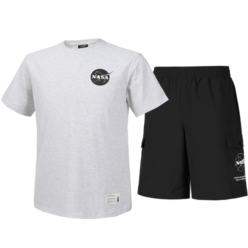 남녀공용 트레이닝 면혼방 반팔티+우븐 5부 반바지 상하세트 [차콜+라이트그레이]