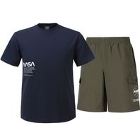 남녀공용 트레이닝 면혼방 반팔티+우븐 5부 반바지 상하세트 [네이비+다크카키]