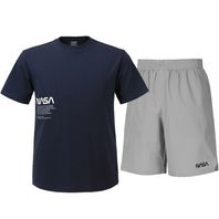 남녀공용 트레이닝 면혼방 반팔티+우븐 5부 반바지 상하세트 [네이비+라이트그레이]