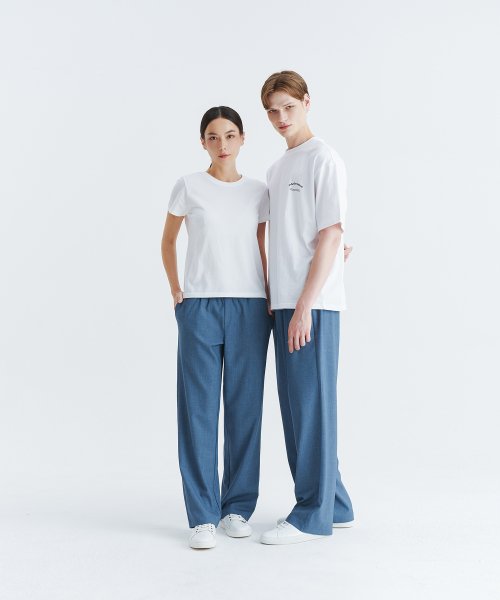 유니섹스 세미 와이드 밴딩 슬랙스 스모크 블루