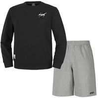 남녀공용 루즈핏 스웨트셔츠 와펜 맨투맨 +5부 면반바지 상하세트 [블랙+라이트멜란지]