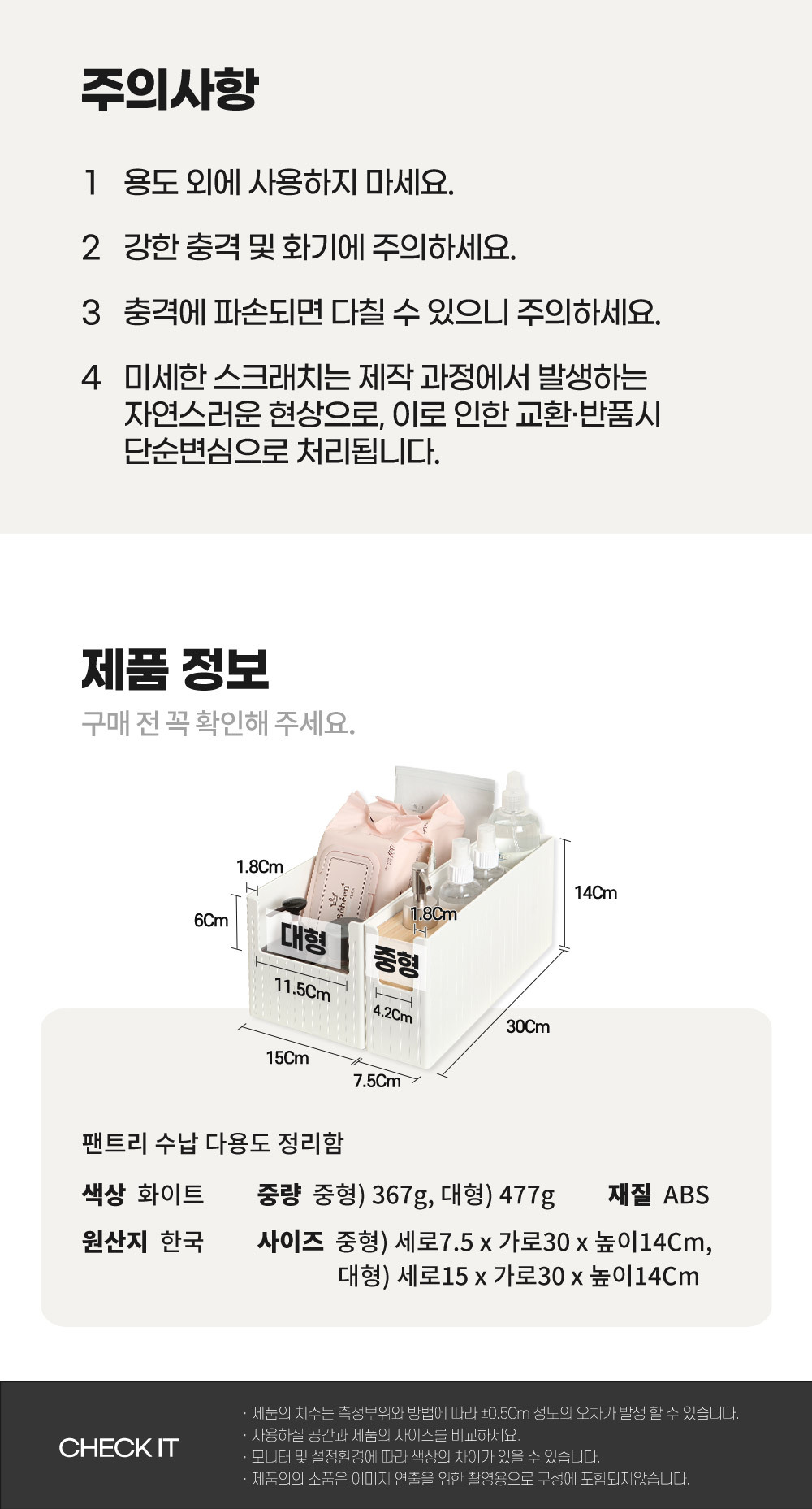 다용도 팬트리 수납정리함 중형2개+대형2개