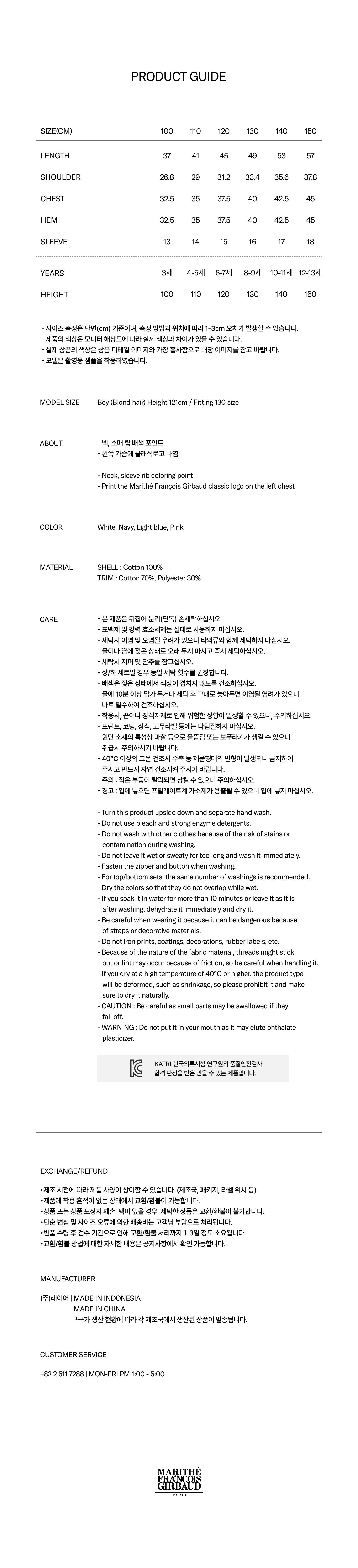 마리떼 키즈(MARITHÉ KIDS)는 마리떼 프랑소와 저버 특유의 프렌치 감성과 무드를 담은 키즈 라인. 마리떼 어덜트 라인과 함께 패밀리 룩을 연출할 수 있는 시그니처 아이템 미니 버전과, 아이들의 동심을 닮은 그래픽이 특징입니다.