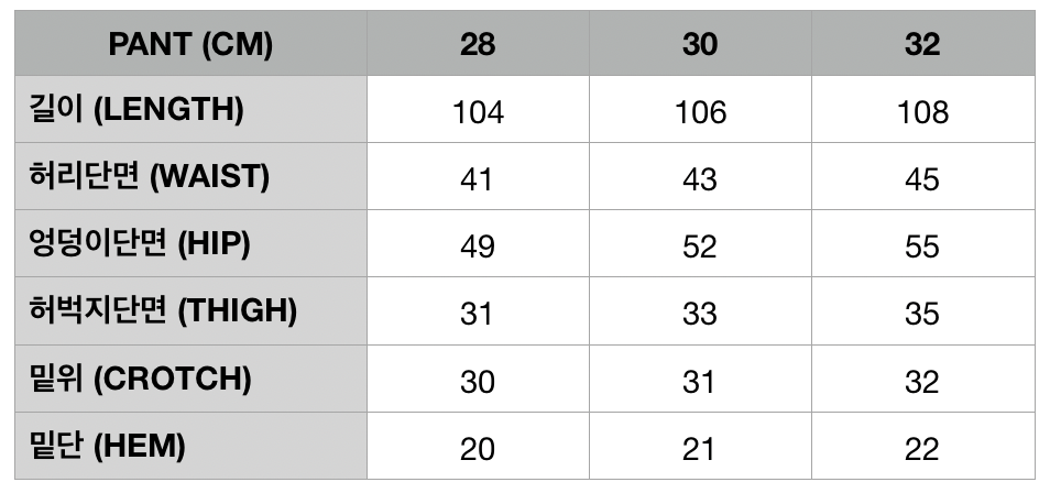 | 핏 | 스키니 | 슬림 | 레귤러 | 루즈 | 오버 사이즈 |