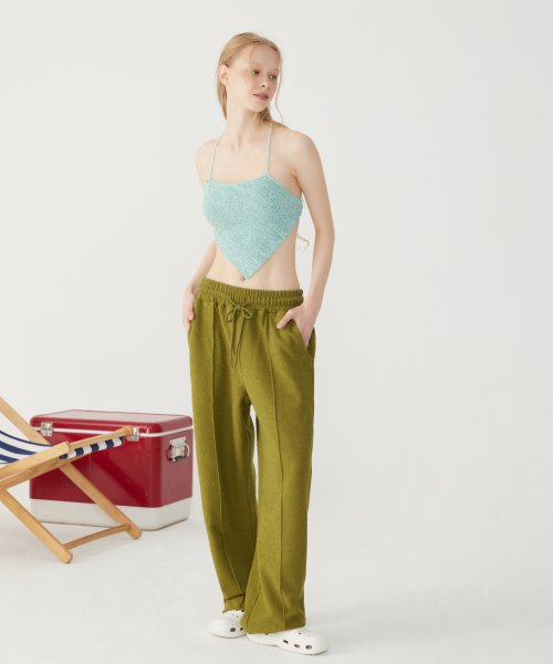 GLOSSY WIDE EASY PANTS_Green