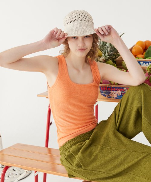 TERRY SQUARE NECK SLEEVELESS_Orange