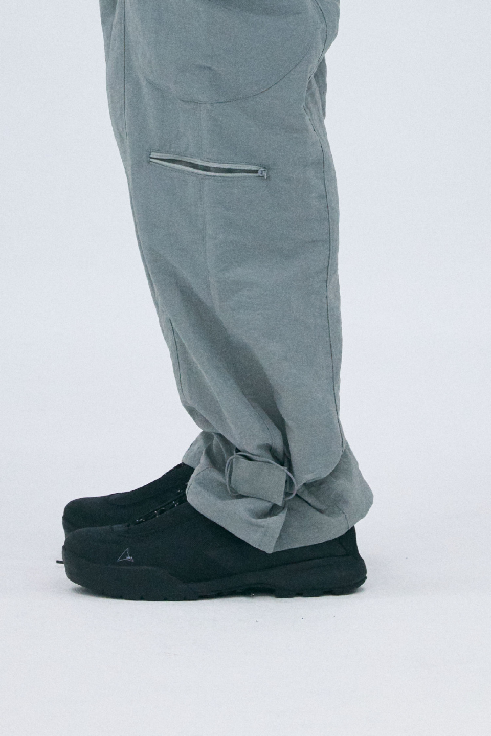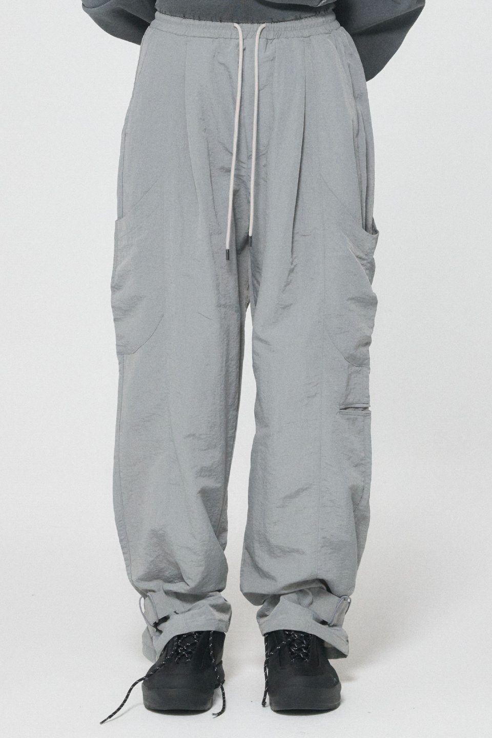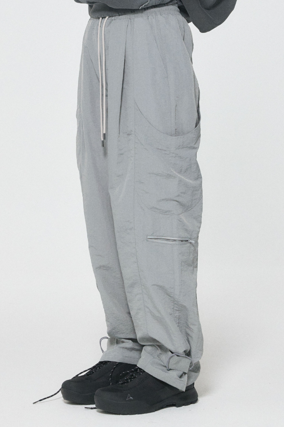 밑단 핏을 조절할 수 있는 나일론 팬츠입니다.