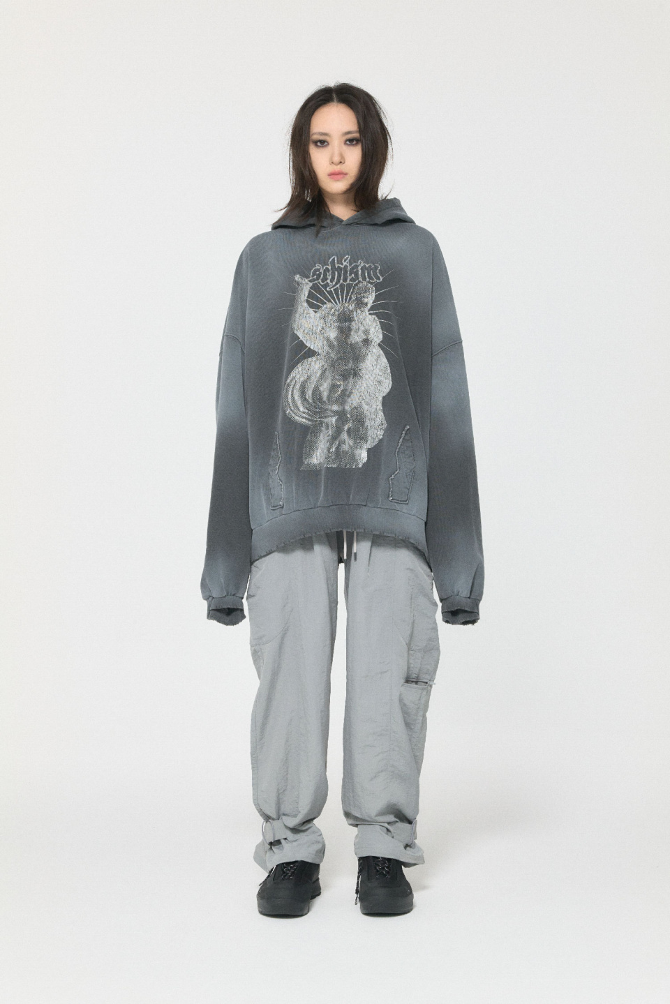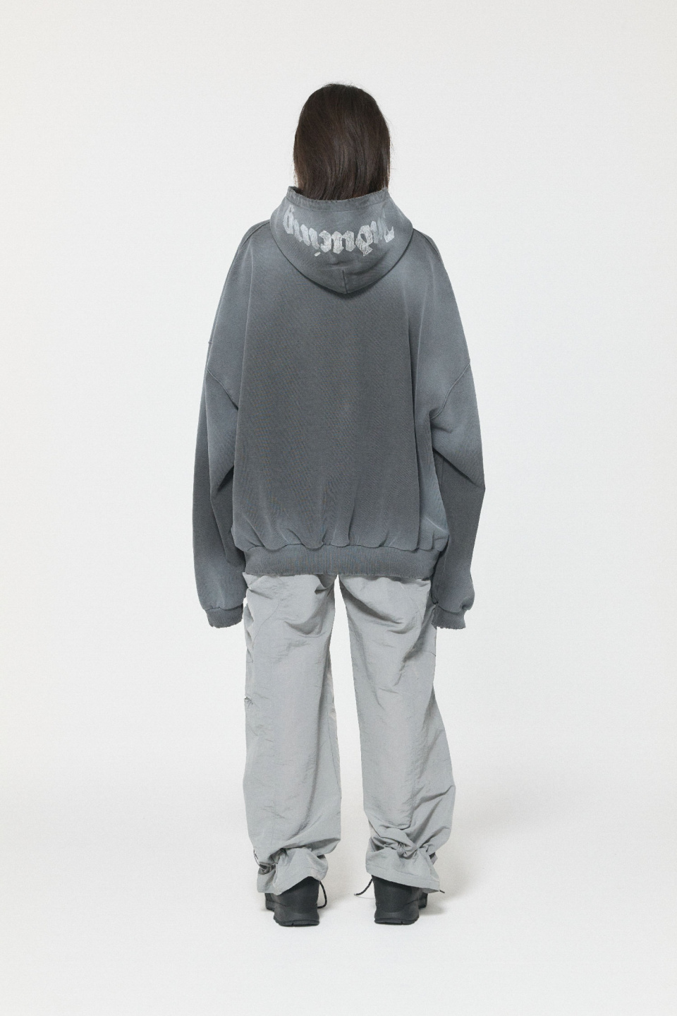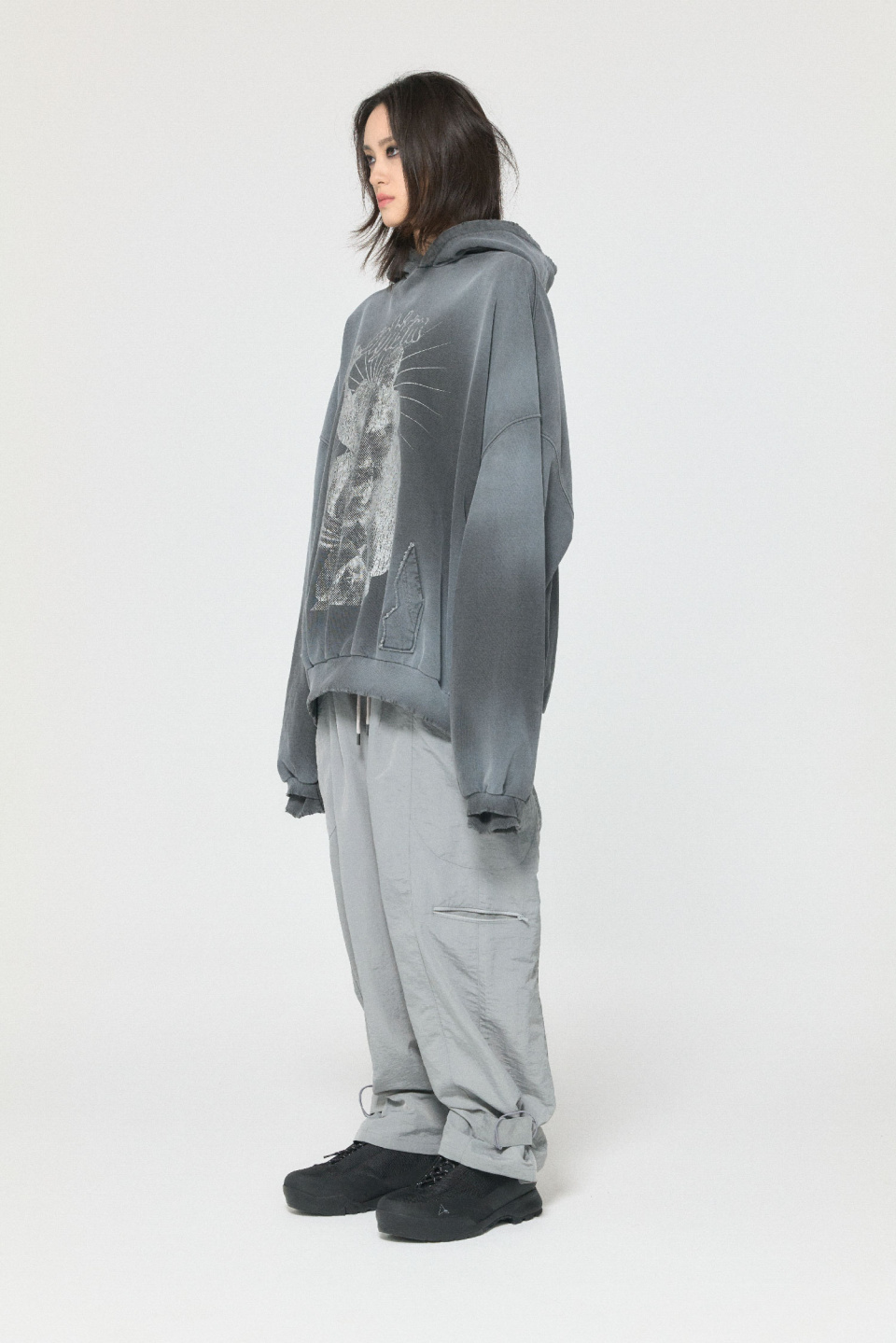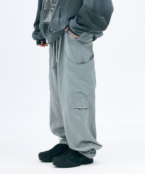 밑단 핏을 조절할 수 있는 나일론 팬츠입니다.