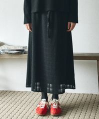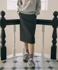P3298 맥시 체크 스커트_Black
