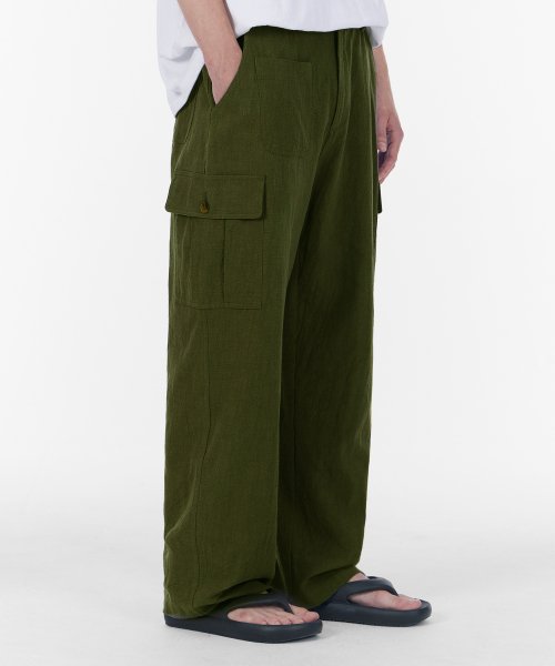 와이드 프런트 포켓 썸머 카고 팬츠 카키
