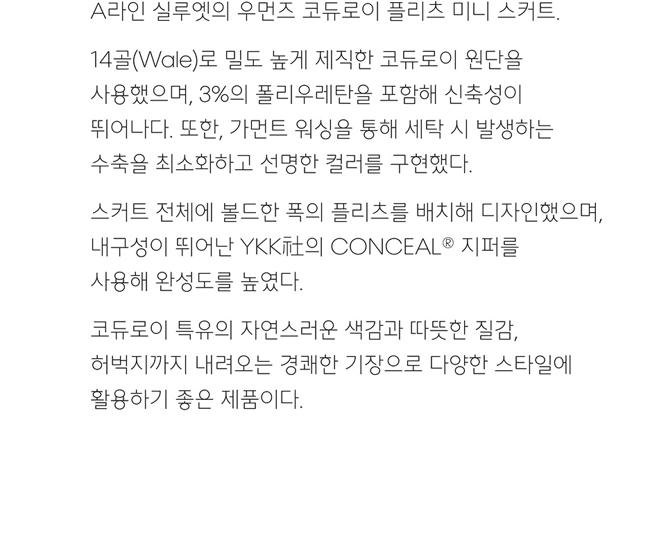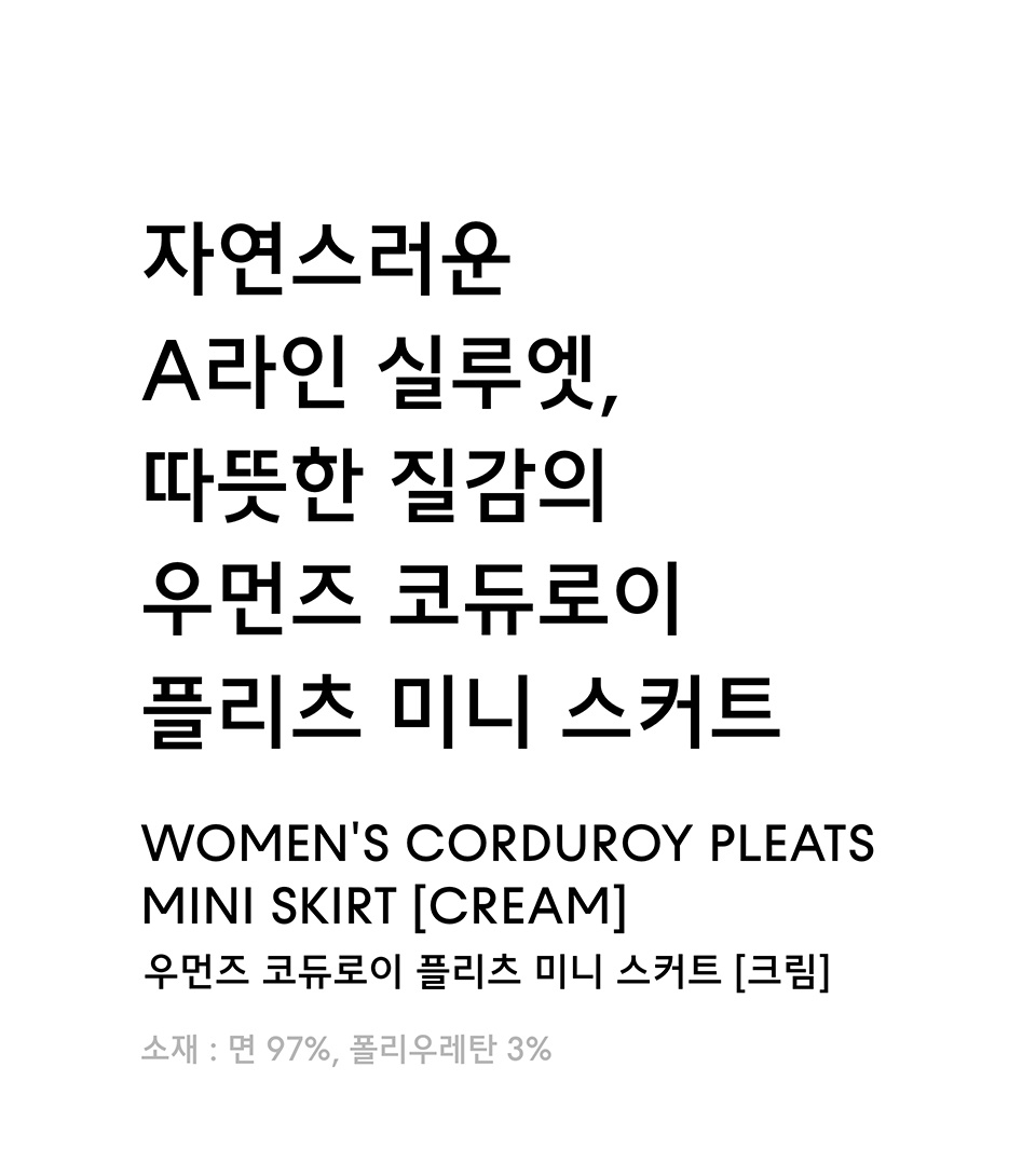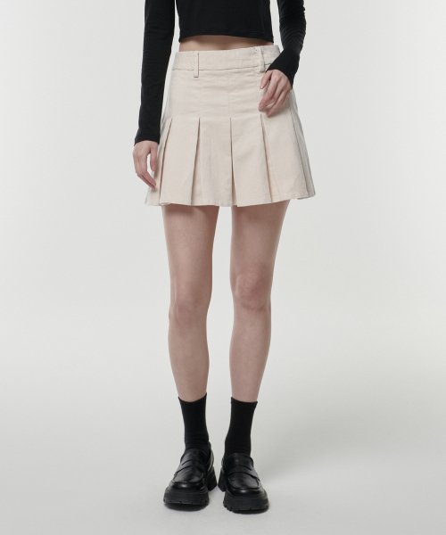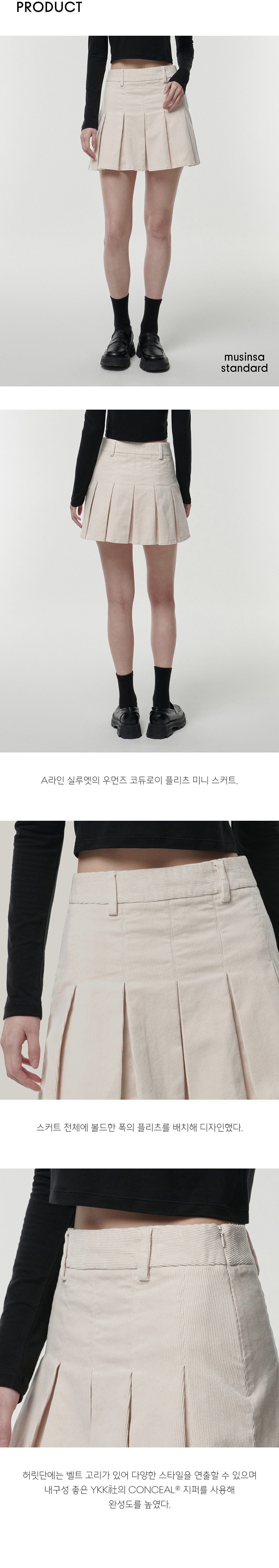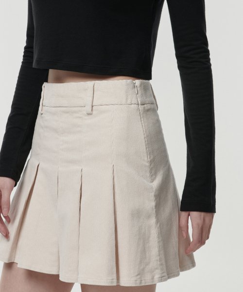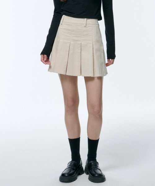우먼즈 코듀로이 플리츠 미니 스커트 [크림]