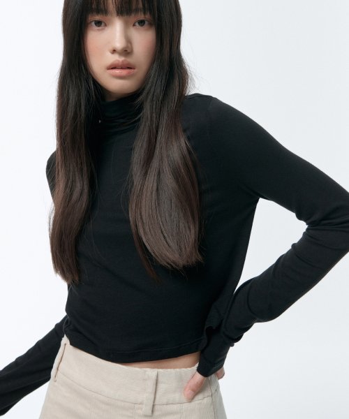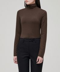 우먼즈 텐셀 슬림 터틀 넥 티셔츠 [브라운]
