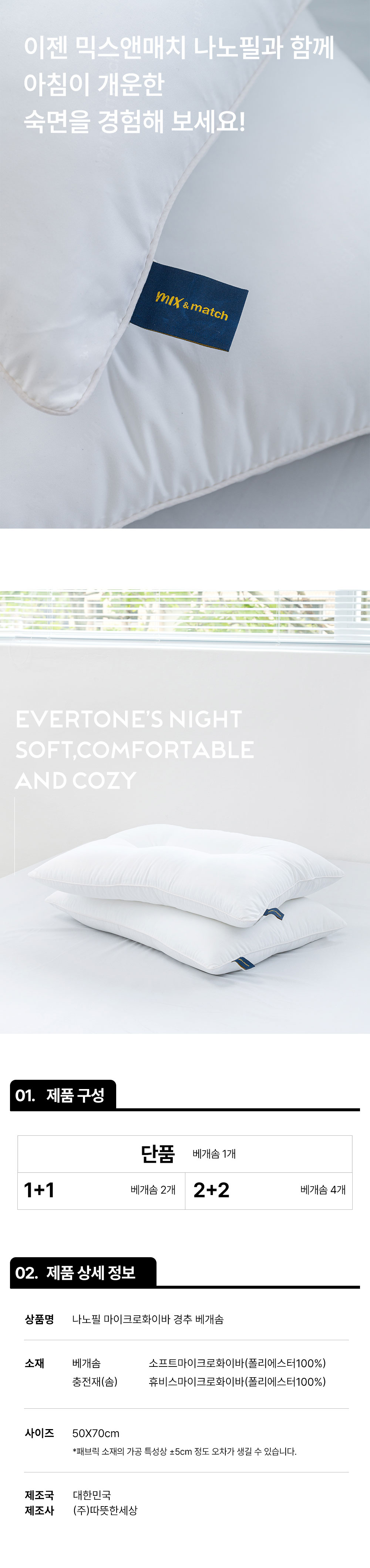 나노필 알러지케어 100% 항균 호텔식 경추베개솜