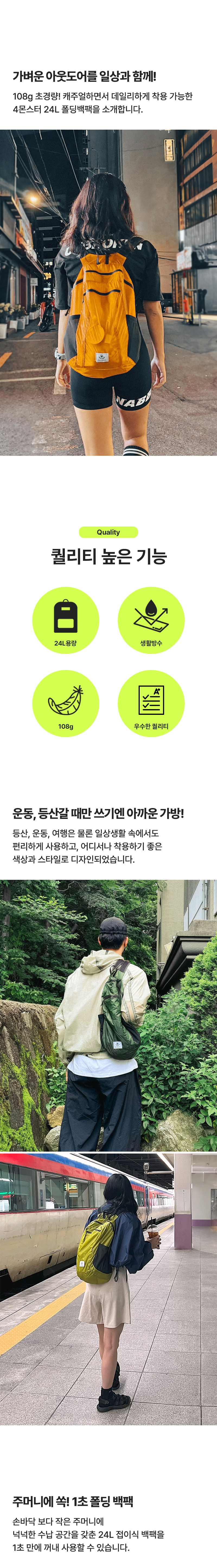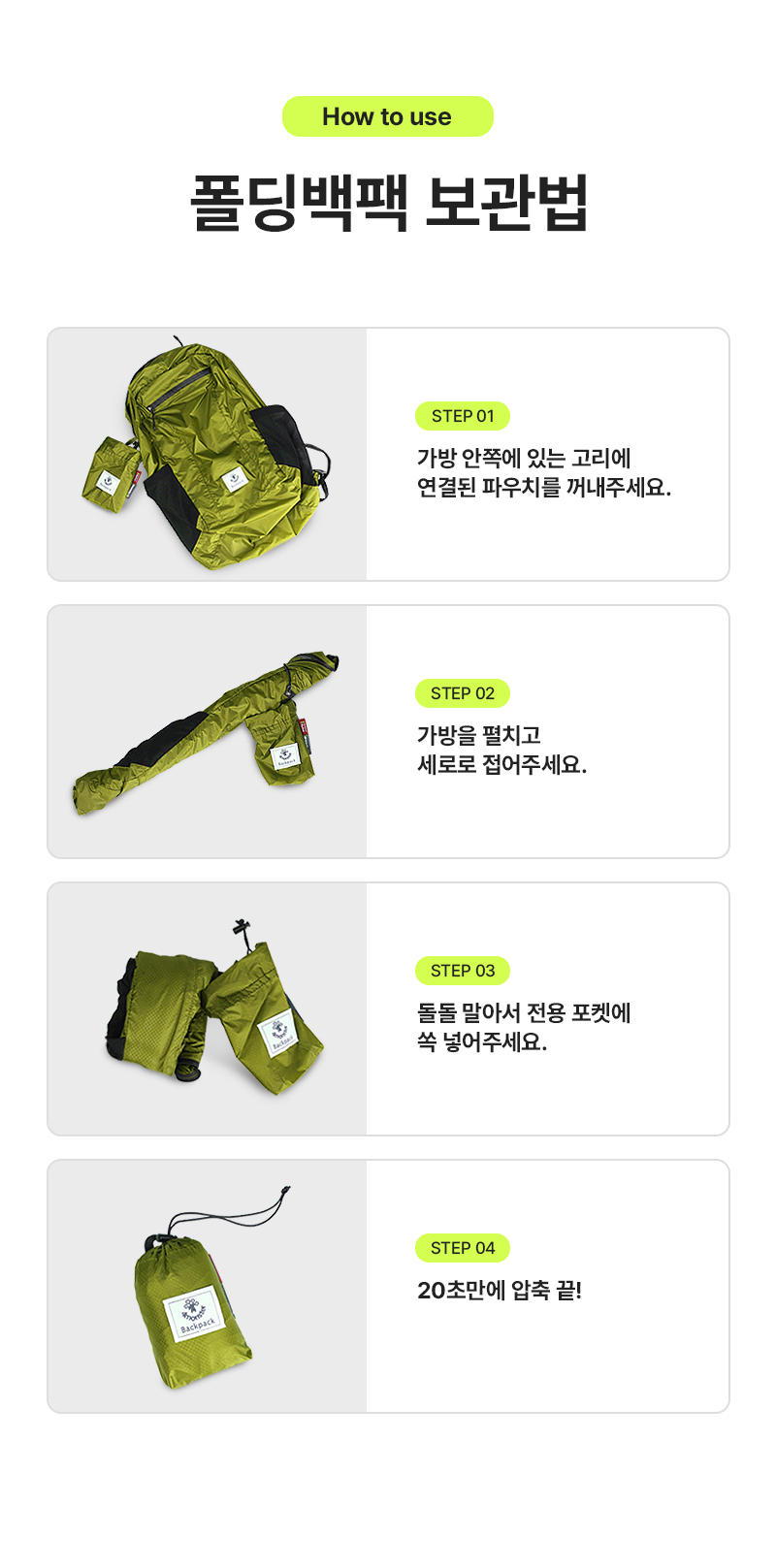 초경량 포켓 폴딩 백팩 24L - 애플그린
