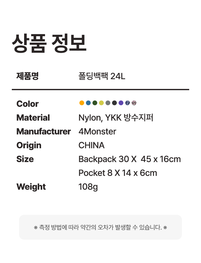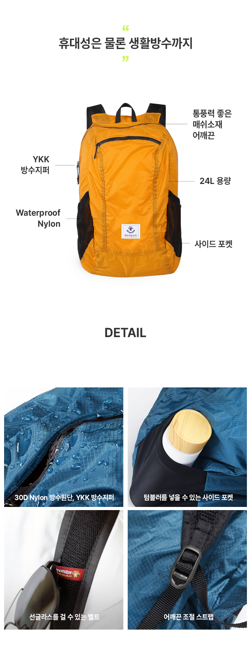 초경량 포켓 폴딩 백팩 24L - 리빙플라워
