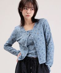 플로랄 니트 가디건 끈나시 셋업 BLUE