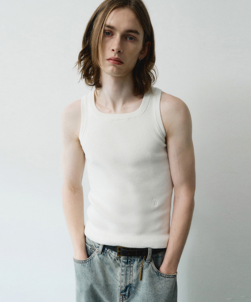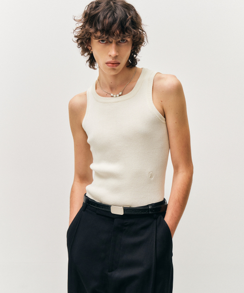 스퀘어 넥 니트 슬리브리스 (화이트)