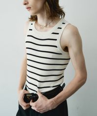 스퀘어 넥 니트 슬리브리스 (블랙아이보리)
