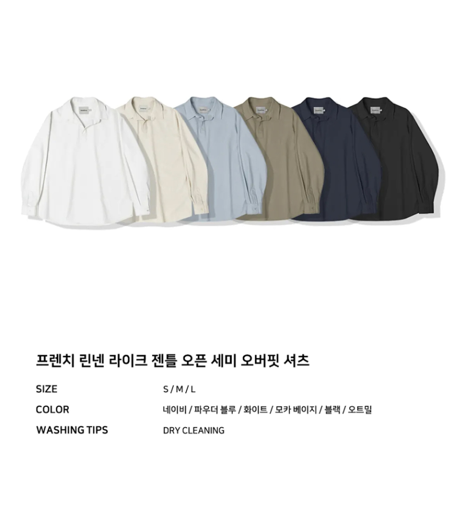 프렌치 린넨 라이크 젠틀 오픈 세미 오버핏 셔츠 - 6COL