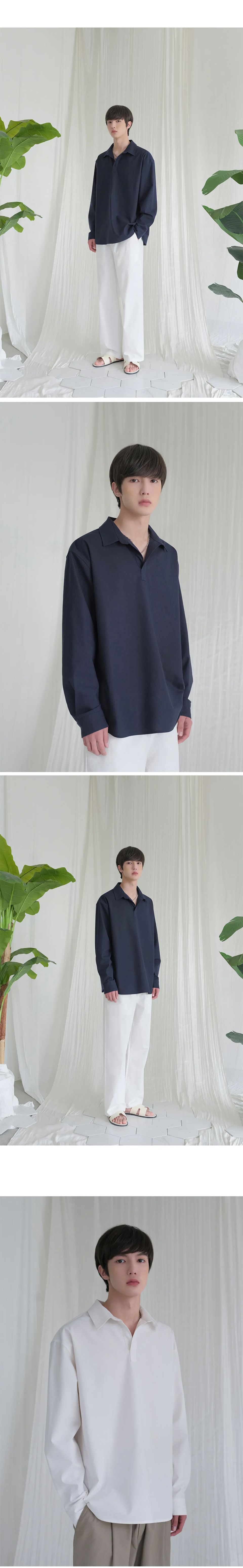 프렌치 린넨 라이크 루즈핏 오픈카라 긴팔 셔츠 - 6COL