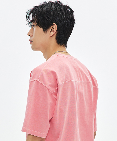 460G 컷 헤비 피그먼트 티셔츠-코랄-