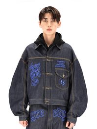 그리드 드래곤 커브드 슬리브 데님 자켓(인디고 데님)