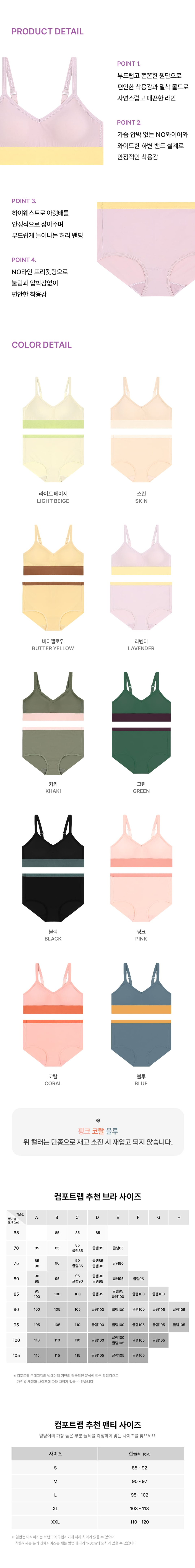 [브라+팬티][릴리즈]6컬러 젤리 탄탄 노와이어 심리스 브라 팬티 세트