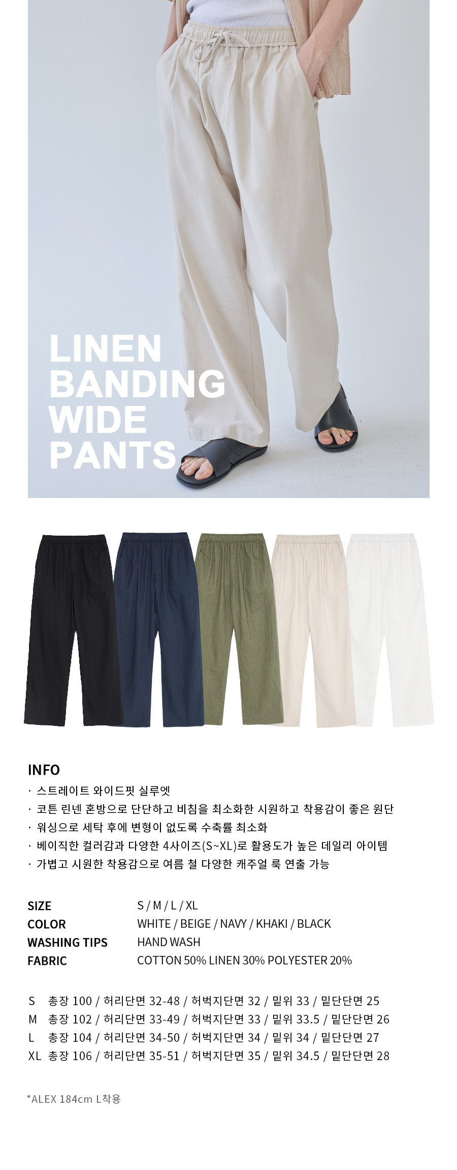 린넨 밴딩 와이드 팬츠 5 COLOR