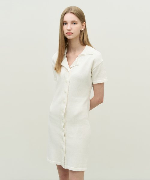 킷 버튼 슬림 미디 원피스 - 아이보리