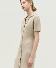 킷 버튼 슬림 미디 원피스 - 베이지