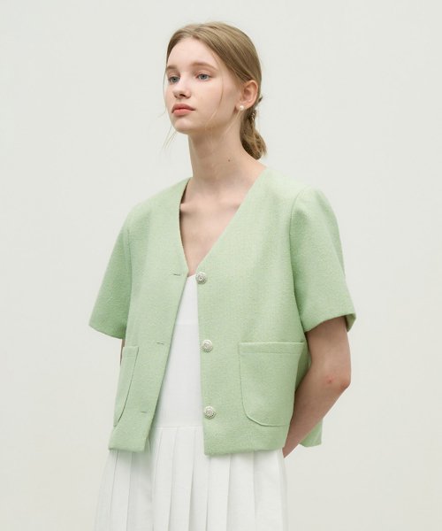 로얄 하프 슬리브 트위드 자켓 - 민트