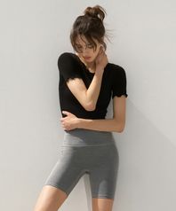 여성 요가복 DEVI-T0061-블랙 필라테스 슬림 반팔 물결티
