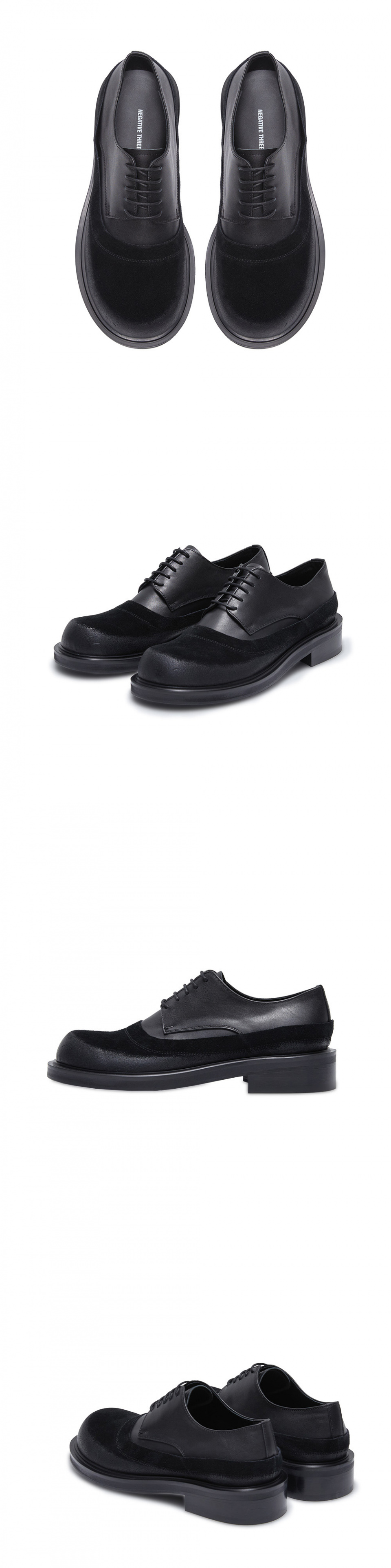 네거티브쓰리(NEGATIVE THREE)는 어떠한 장르에 국한되기를 거부하며, 성별의 경계 없이 자신을 표현하기를 원하는 이들을 위한 슈즈 브랜드입니다. 또한, 그들이 가장 자신을 표현하기 좋은 스타일링을 착용할 수 있는 온도가 '영하 3도'라는 내적 의미도 있습니다.