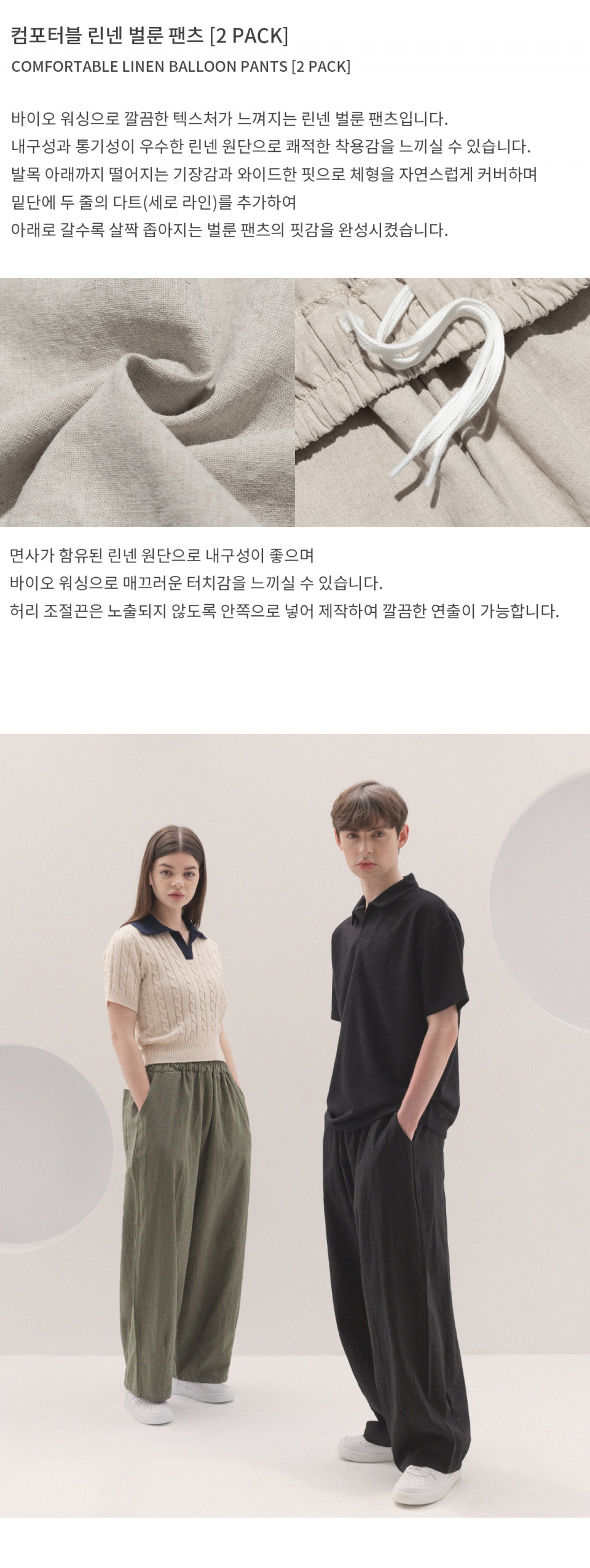 [2 PACK] 컴포터블 린넨 벌룬 팬츠 (3color)