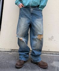 카펜터 데미지 와이드 데님 팬츠(블루)