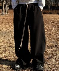 Edition9. 스트레이트 커브드 핀턱 와이드 트레이닝 팬츠 (블랙)