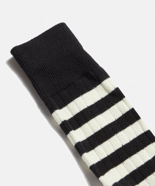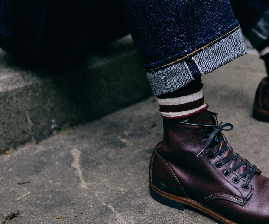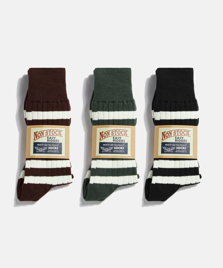 논스탁의 스트라이프 삭스는 ‘카페 레이서’라는 모터사이클 레이싱 컬처에서 시작되었으며