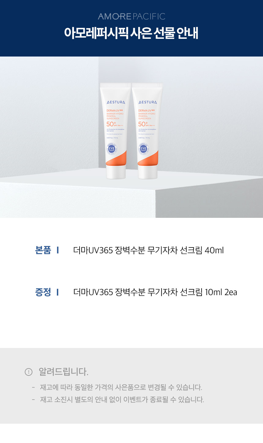 더마UV365 장벽수분 무기자차 선크림 40ml