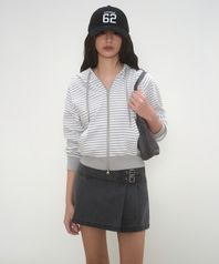 우먼즈 스트라이프 후디드 집업 [라이트 그레이]