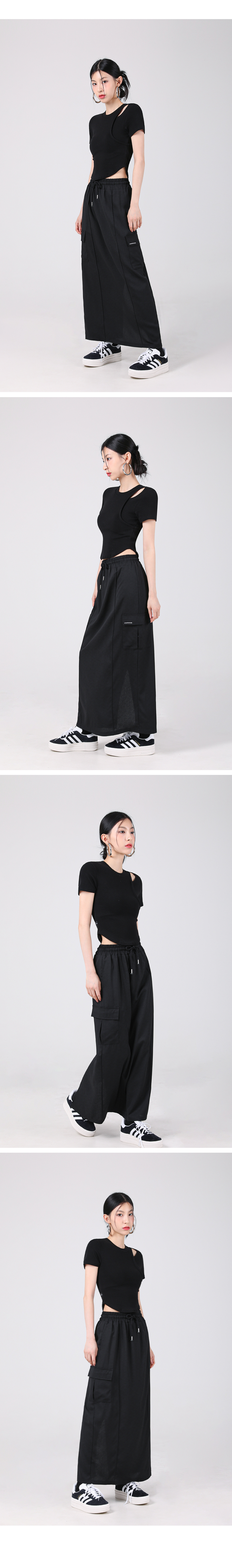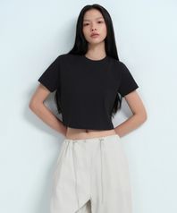 우먼즈 크루 넥 크롭 티셔츠 [블랙]