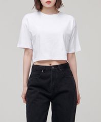 우먼즈 릴렉스 핏 크루 넥 크롭 티셔츠 [화이트]