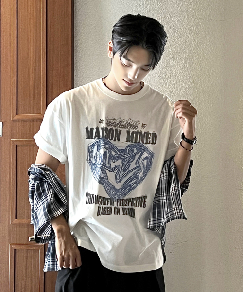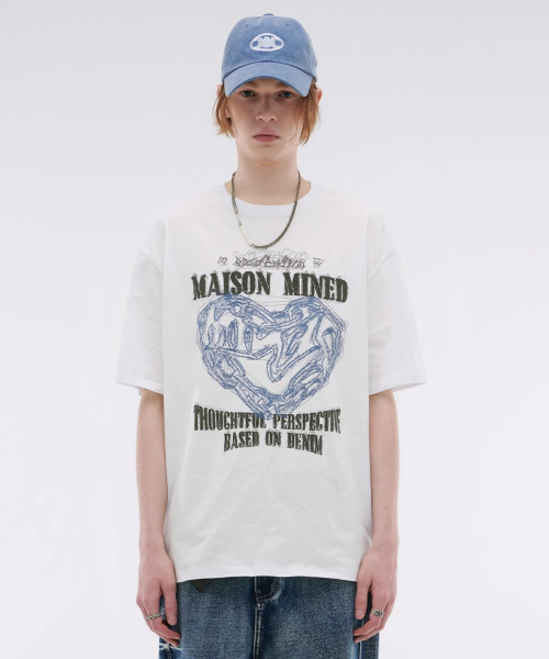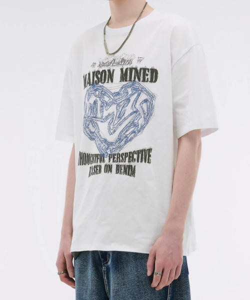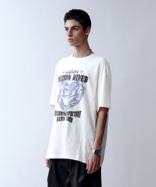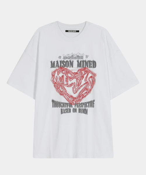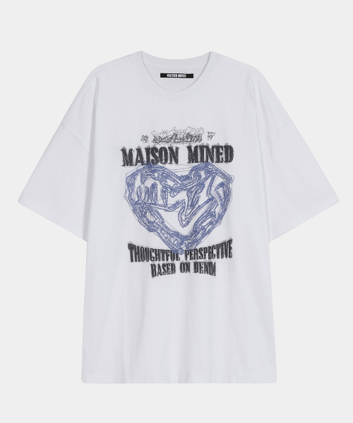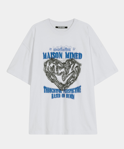 DOODLE HEART HALF T WHITE GREYISH BLUE