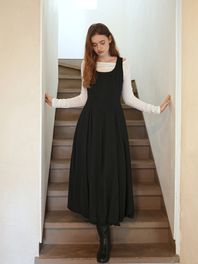 하늘하늘한 면 소재의 롱 원피스입니다.