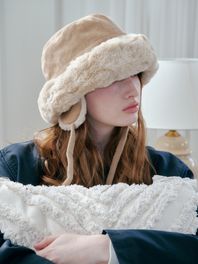 스웨이드 퍼 이어플랩 버킷햇 (베이지)