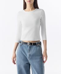 우먼즈 슬림 크루 넥 7부 티셔츠 [화이트]