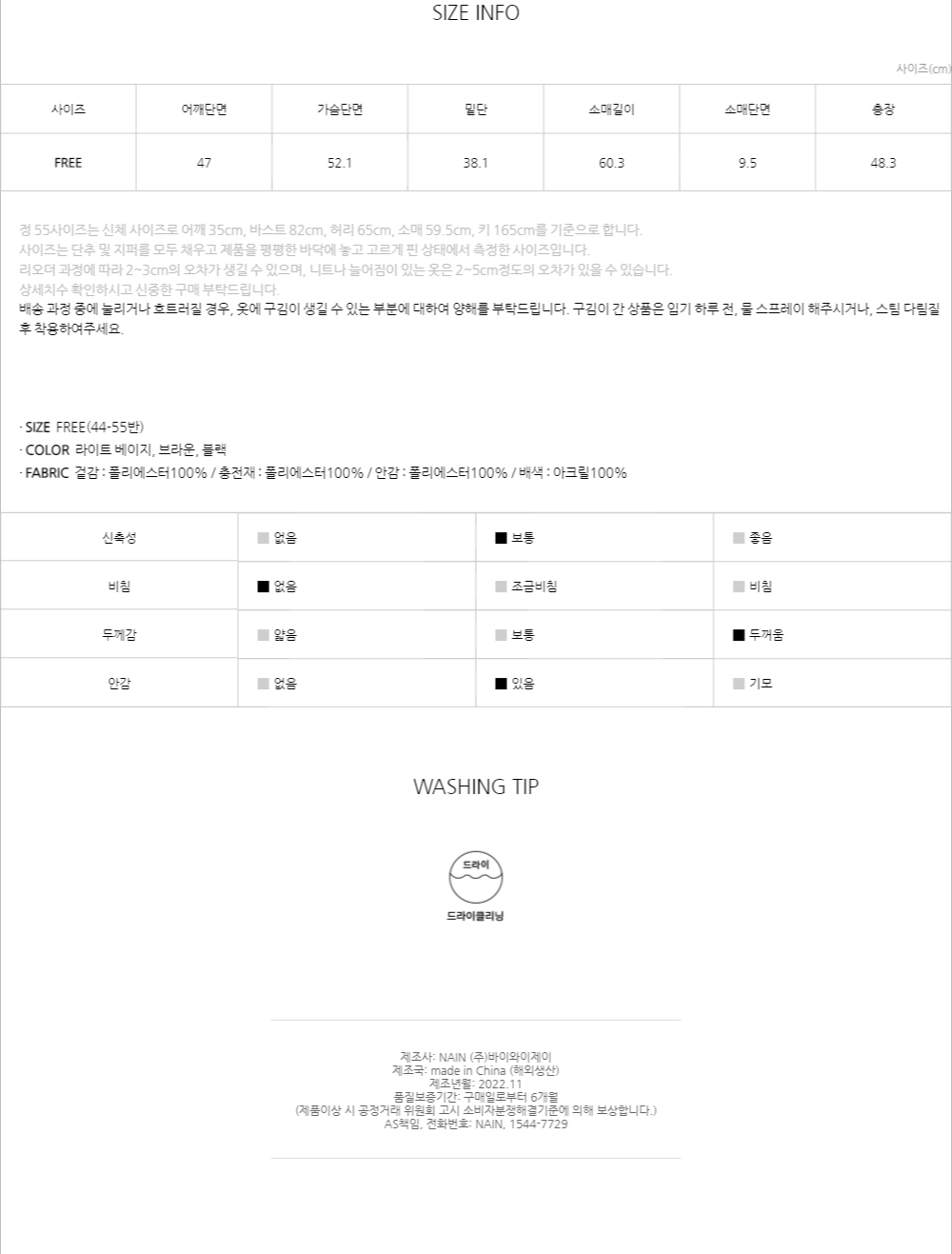 모델 컷은 촬영 장소와 시간, 그래픽 작업의 테크닉에 따라 실제 상품의 컬러와 차이가 있을 수 있습니다.