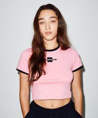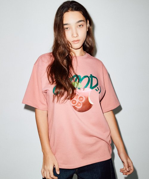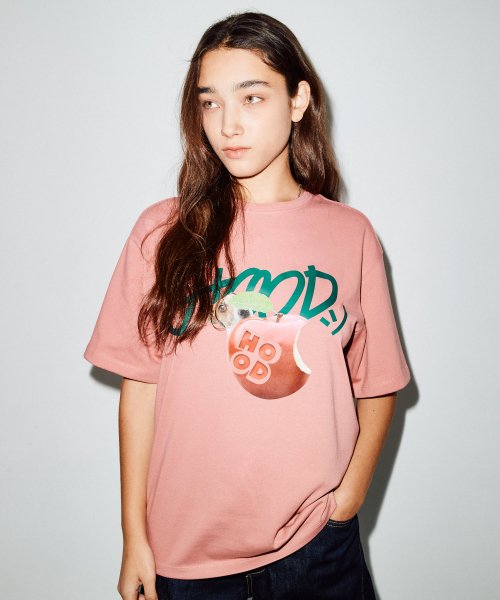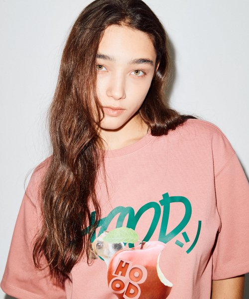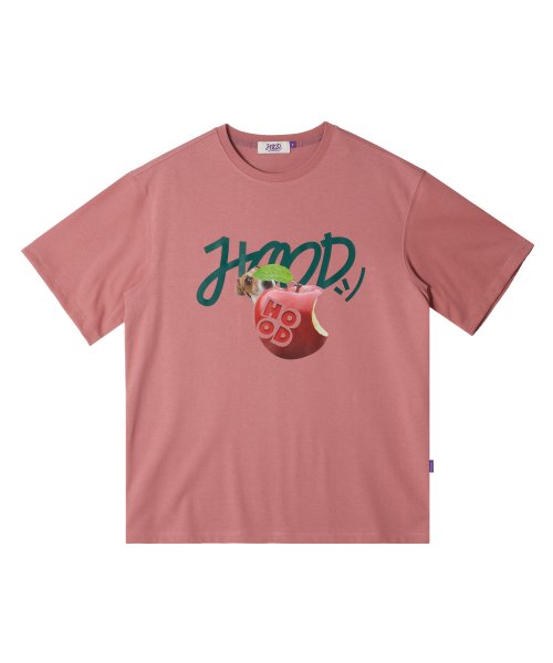 애플 앤 비글 로고 반팔티셔츠 핑크
