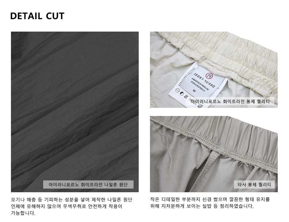 86-IRO293 [안티모스키토] 윈드셀 숏 밴딩 팬츠 카키그레이
