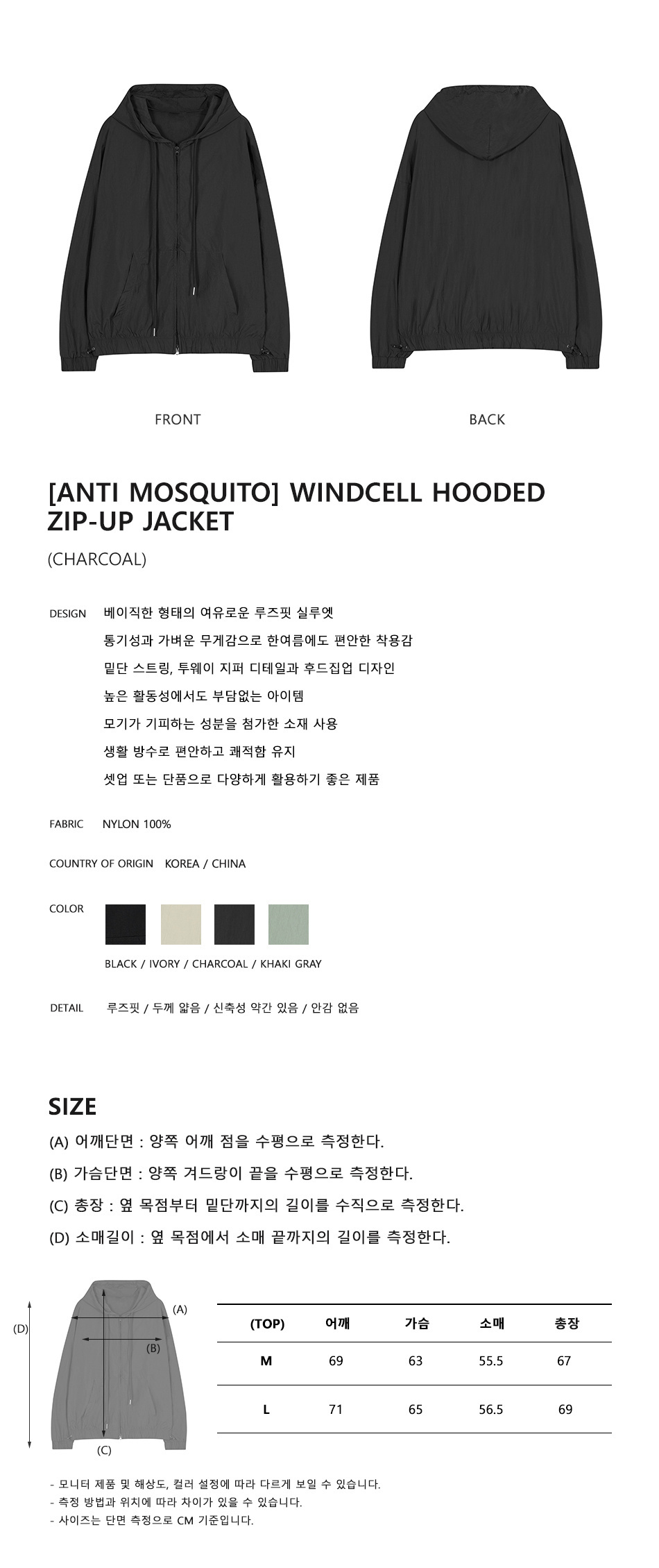 86-IRO295 [안티모스키토] 윈드셀 후드집업 자켓 차콜